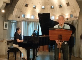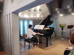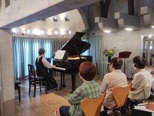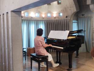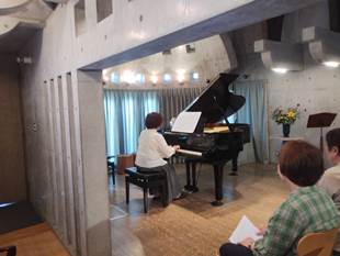 先生から:発表会をソロとアンサンブルに分け、今回はソロ演奏のみで短い時間でしたが、これくらいの時間が丁度良いのでは。今回参加できなかった方は冬にはアンサンブルをメインに行いますが、その時までに仕上げて是非参加願います。ここは皆さんが感じられてますように、自分が音に包まれる感じの中で演奏ができたのではないでしょうか。ただ”緊張しすぎ”と厳しい言葉もありました。 演奏者から:響きがよくて、いつもより気持ちよく弾けました、また、迫力なども出せました。コーラスの響きに心洗われた。など好評の感想でした。 |